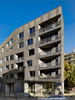 ![]() Straßenansicht (Skizze) Axonometrie des Regelgeschoßes (Skizze) ![]() Wohnraumdarstellung (Skizze) |