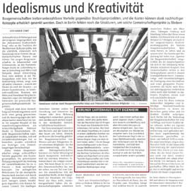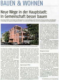 Baugemeinschaften 'Wir sind die Guten' Tagesspiegel, 12.7.2009, Berlin, Seite 9 |