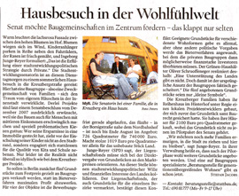 Stadtentwicklungssenatorin Junge-Reyer besucht unsere Hofhäuser Tagesspiegel, 20.8.08, Berlin-Teil Seite 8 |