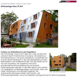 Baugemeinschaft Hofhäuser familienfreundliches Wohnen auf der Webseite der Senatsverwaltung für Stadtentwicklung, 2009 |