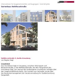 Baugemeinschaft 'Berliner Gartenhaus' familienfreundliches Wohnen auf der Webseite der Senatsverwaltung für Stadtentwicklung, 2009 |
